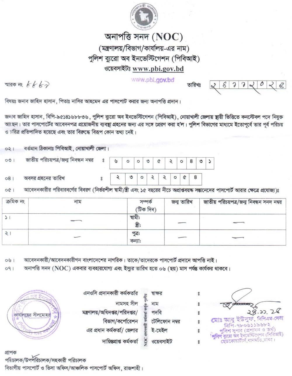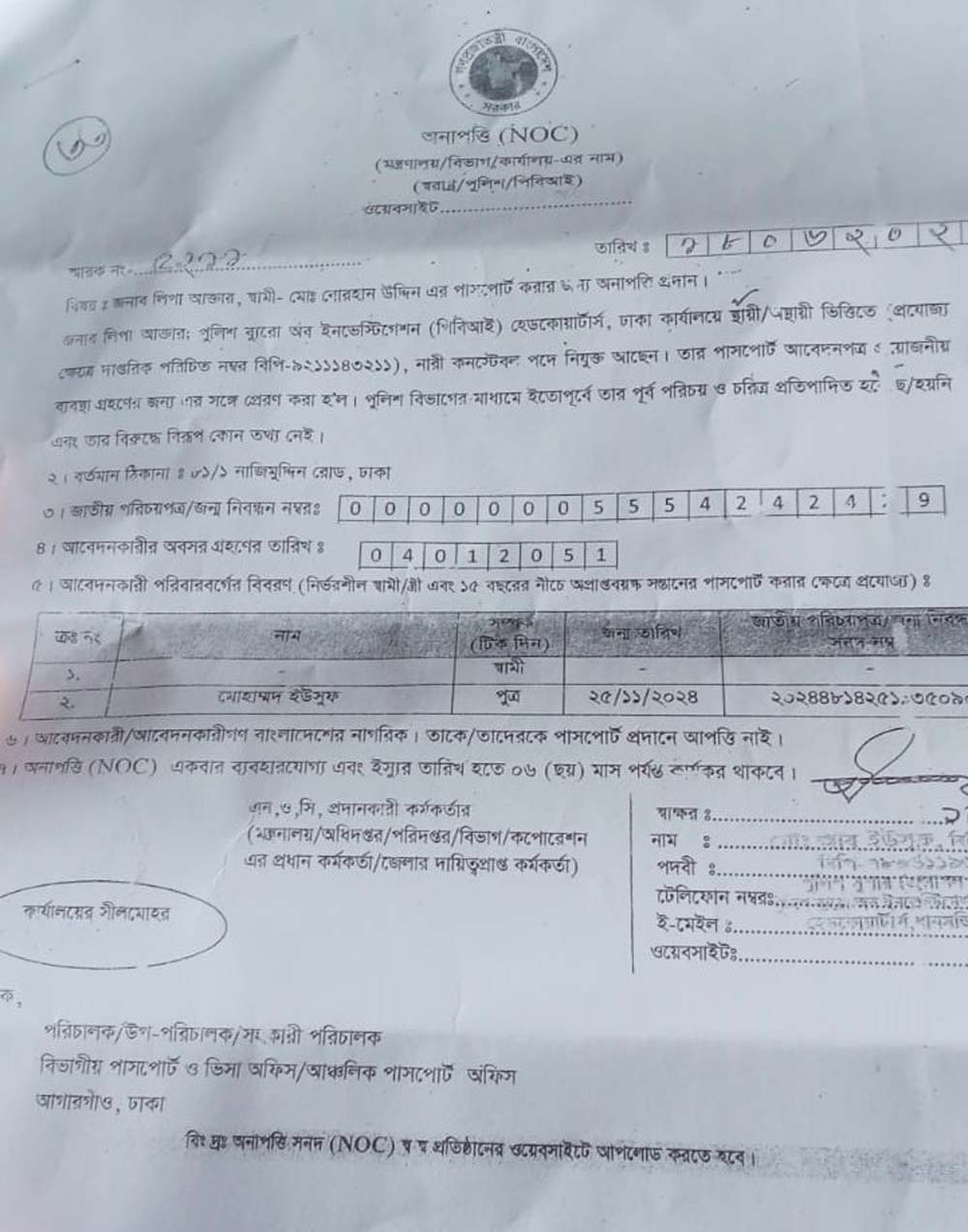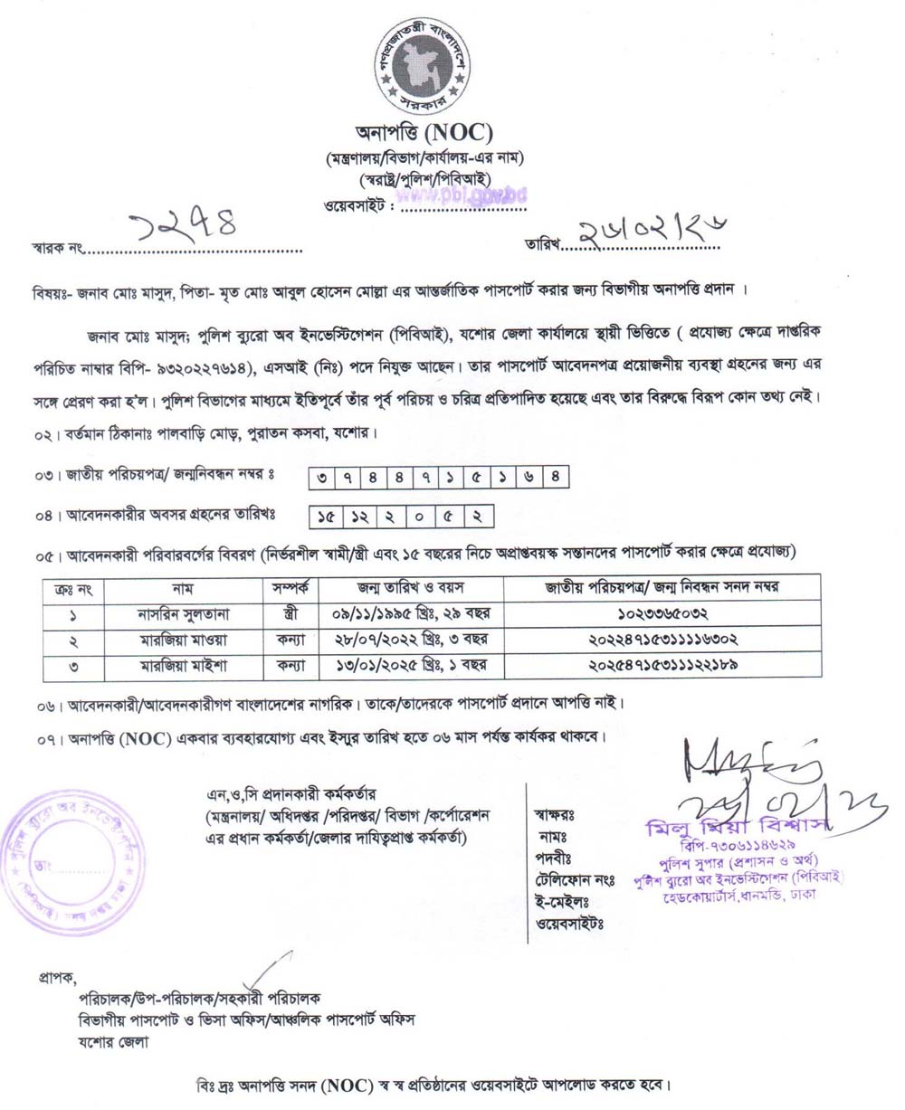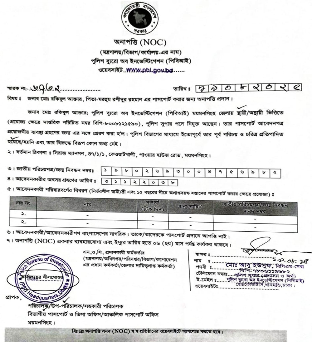 NOC FOR PASSPORT