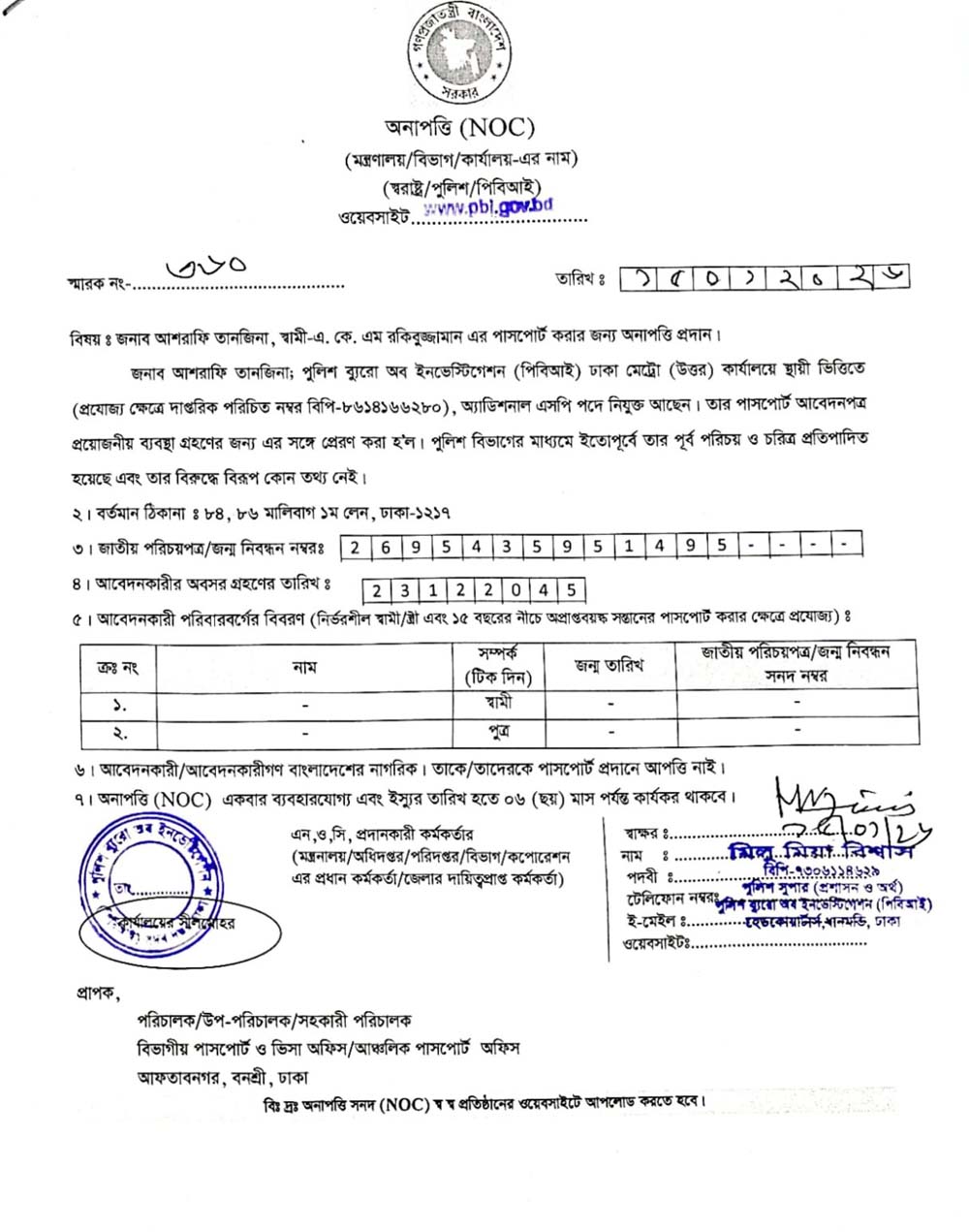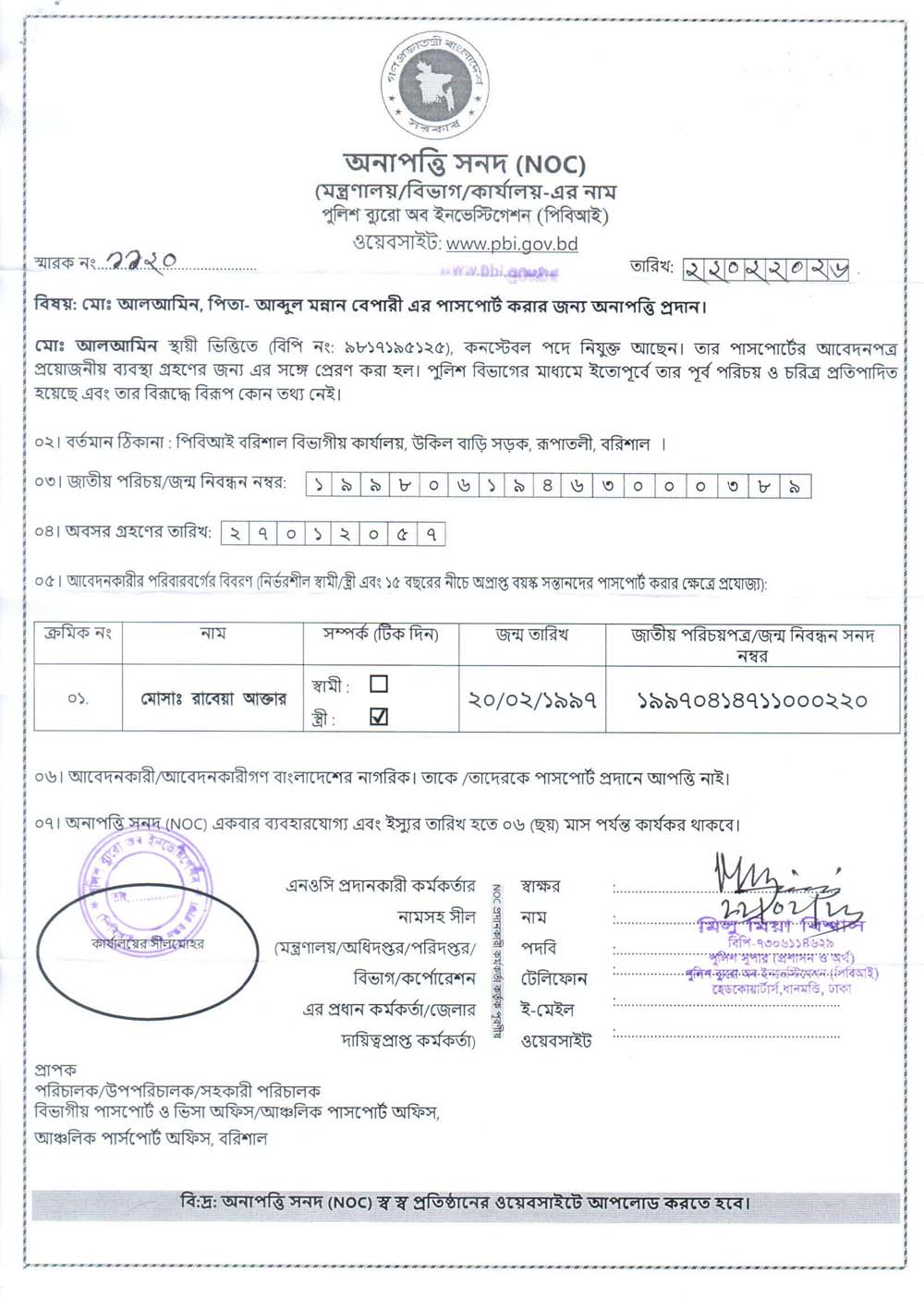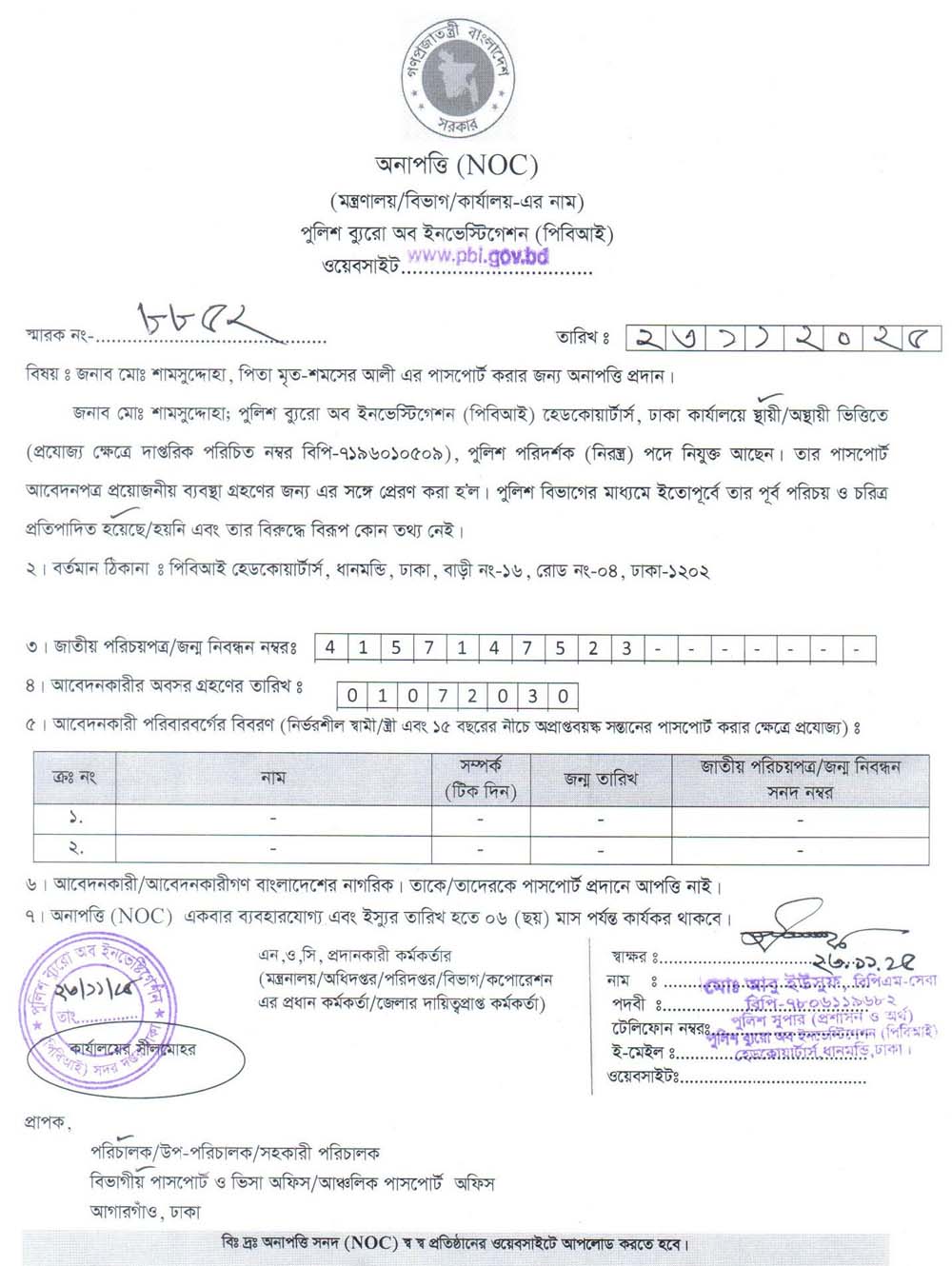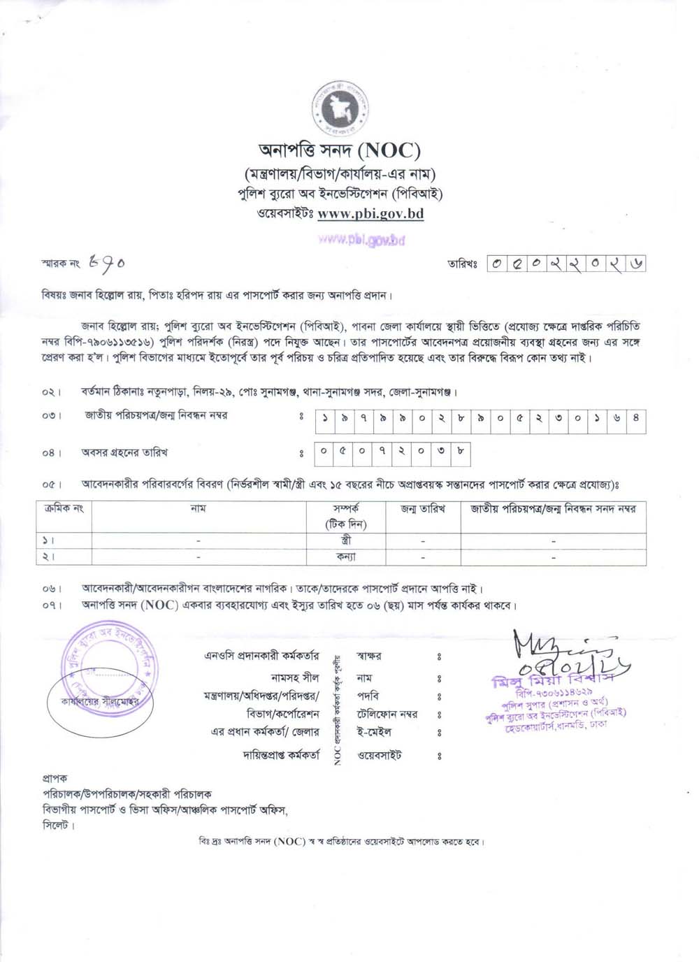 NOC FOR PASSPORT