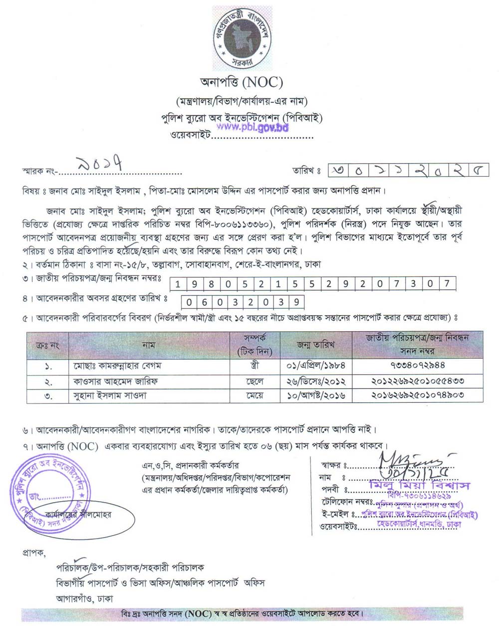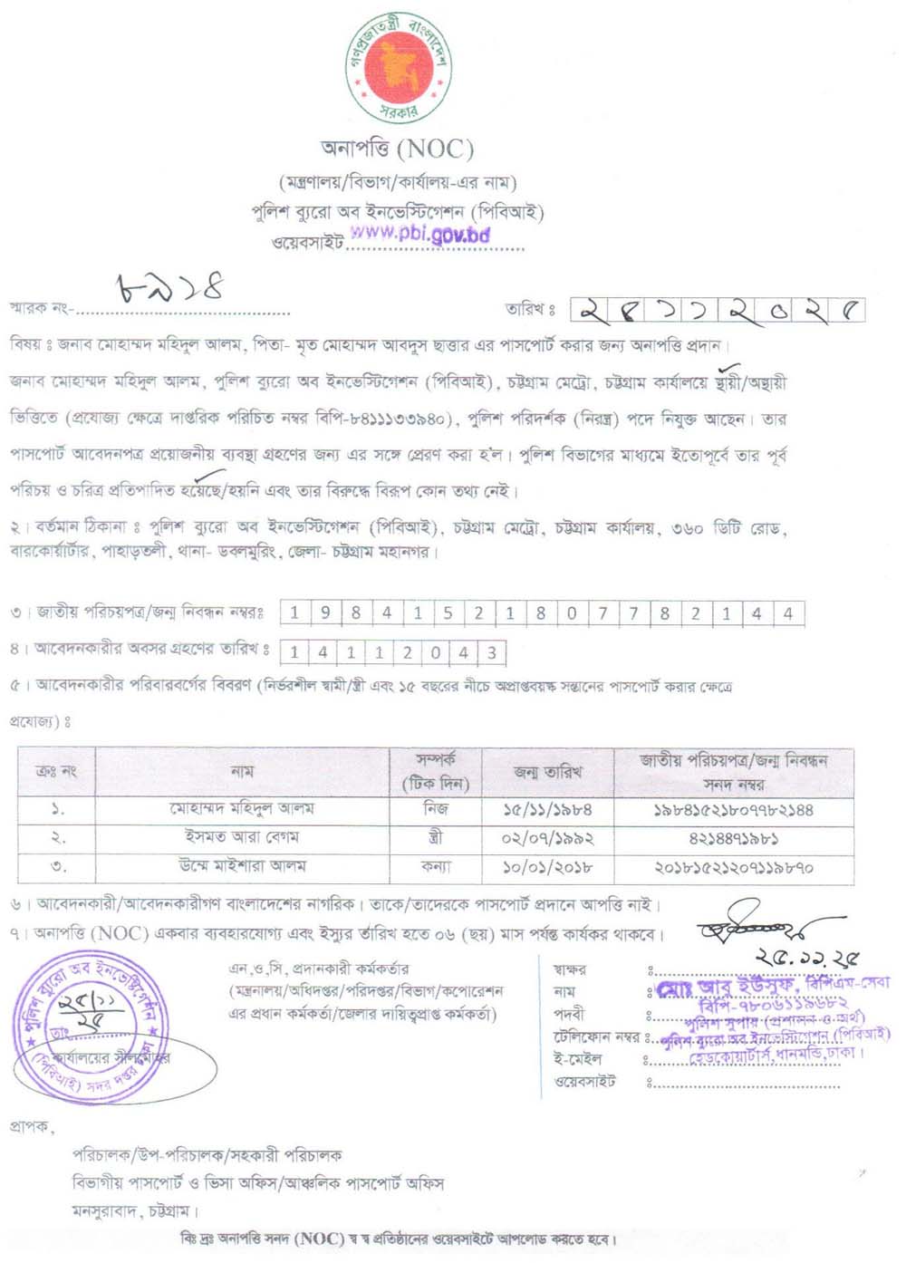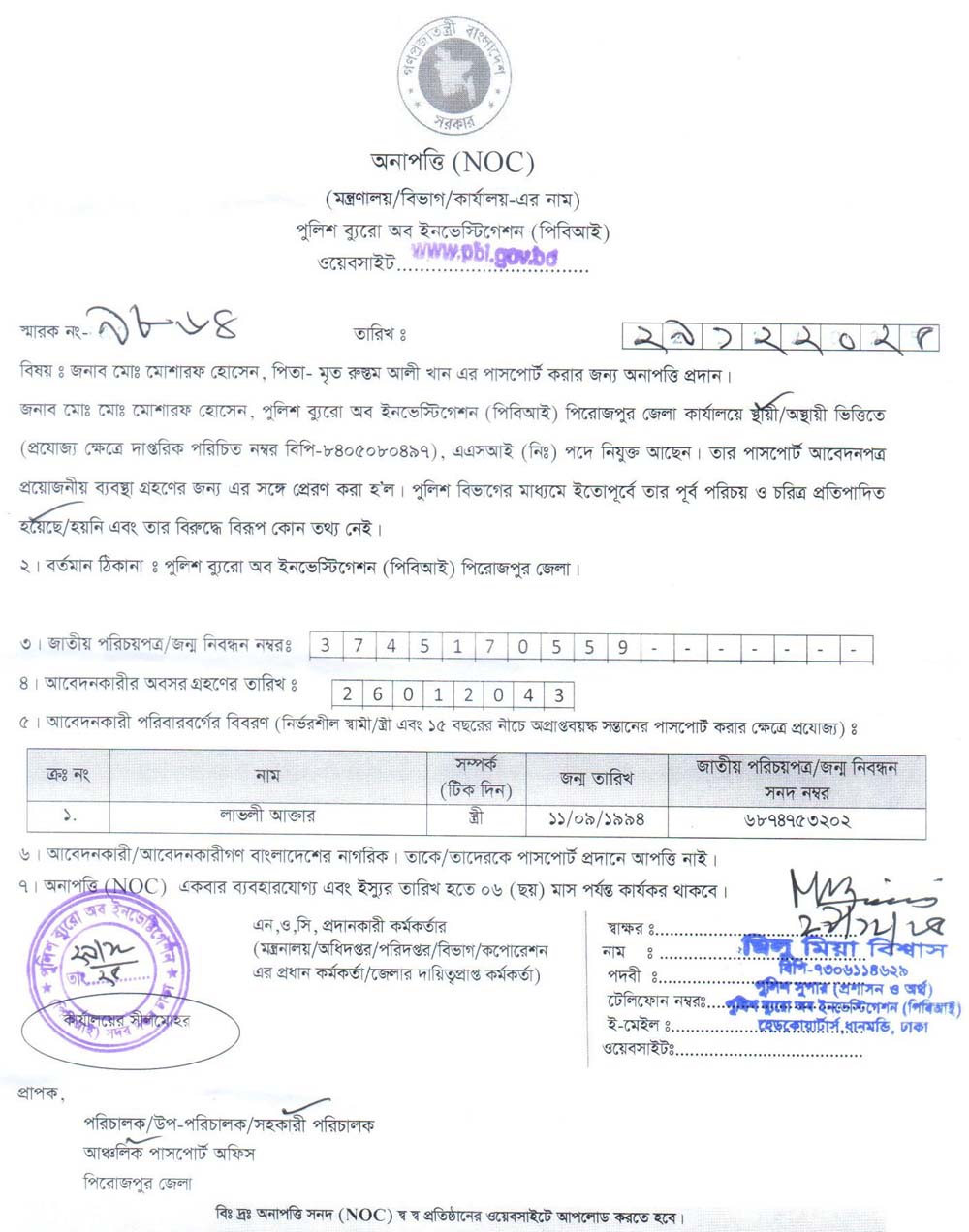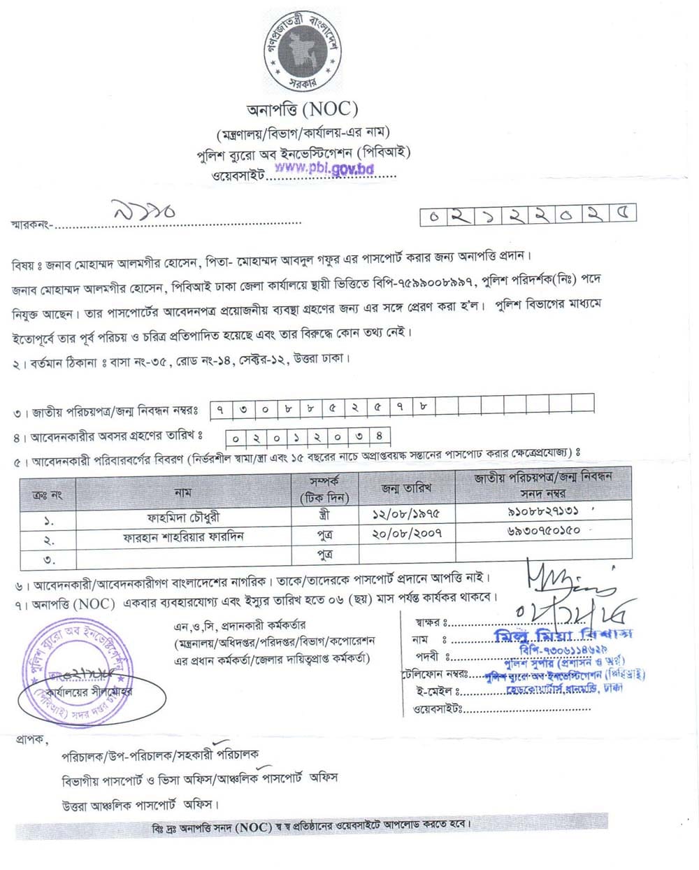 NOC FOR PASSPORT
